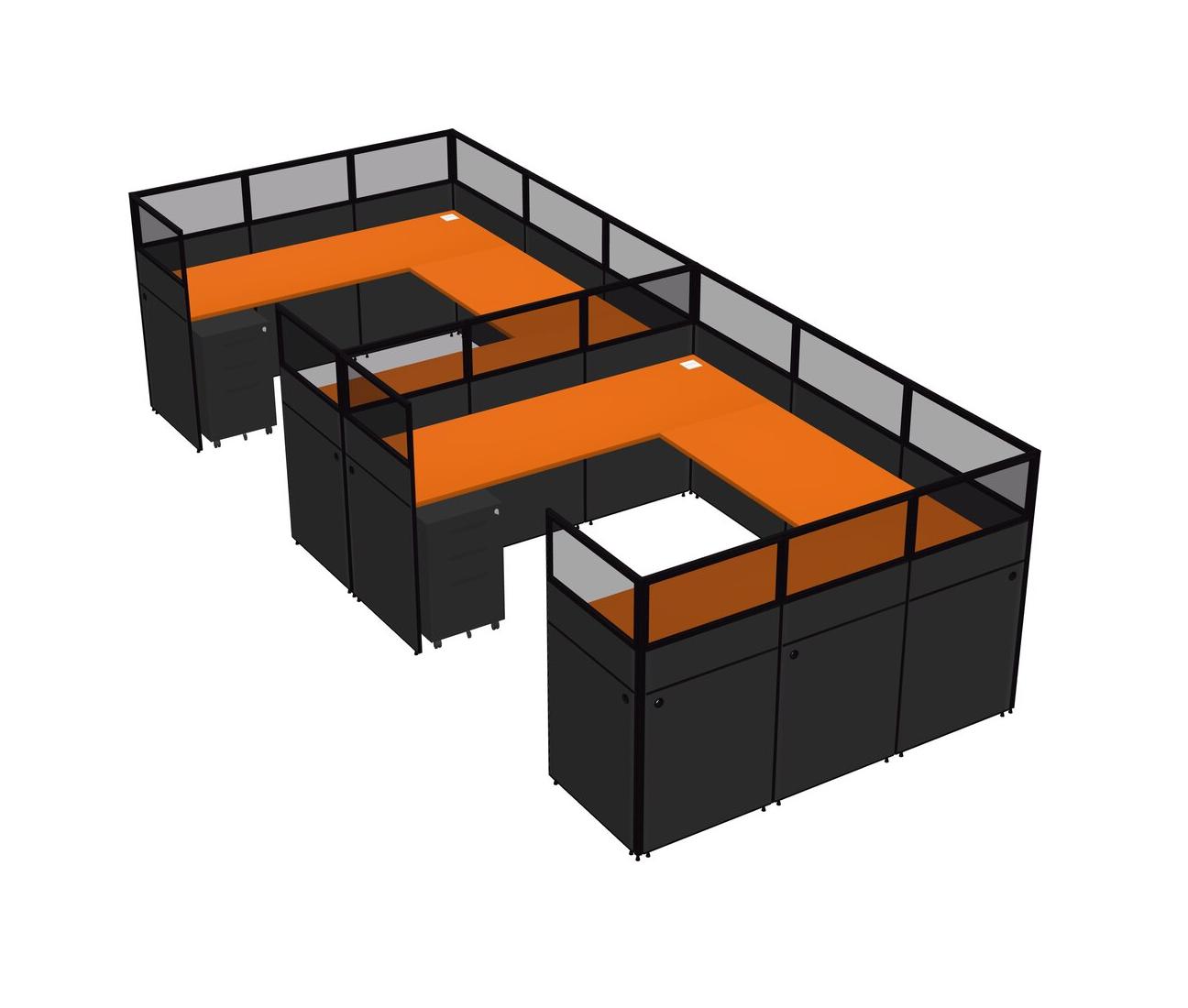 Système De Panneaux En U Orange Pour 2 Personnes + Tiroirs Mobiles En Métal Pour 2 Utilisateur(s)