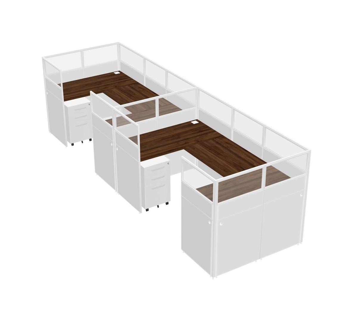 Système De Panneaux En U En Noyer Columbia Pour 2 Personnes + Tiroirs Mobiles En Métal Pour 2 Utilisateurs