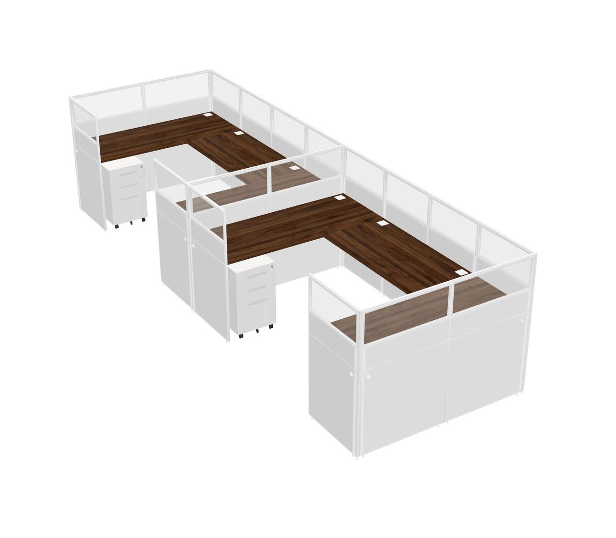 Système De Panneaux En U En Noyer Columbia Pour 2 Personnes + Tiroirs Mobiles En Métal Pour 2 Utilisateurs