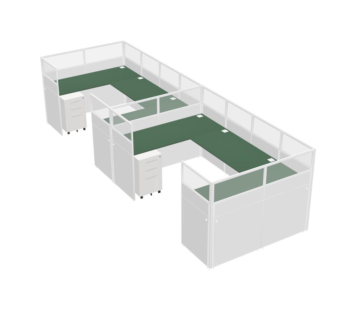Système De Panneaux En U Vert Pour 2 Personnes + Tiroirs Mobiles En Métal Pour 2 Utilisateur(s)