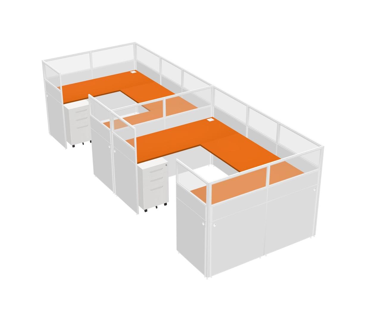 Système De Panneaux En U Orange Pour 2 Personnes + Tiroirs Mobiles En Métal Pour 2 Utilisateur(s)