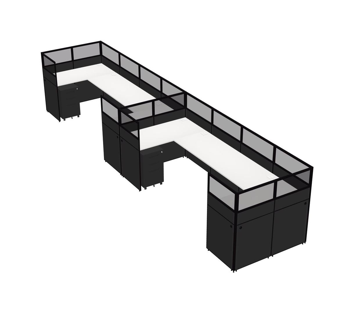 Système De Panneaux En U Blanc Pour 2 Personnes + Tiroirs Mobiles En Métal Pour 2 Utilisateur(s)