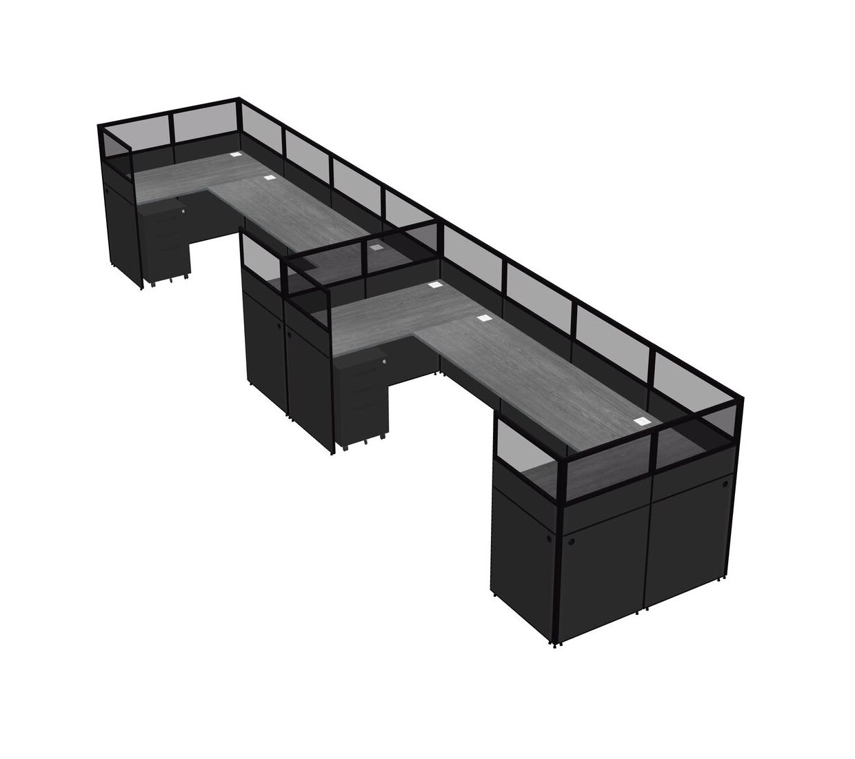 Système De Panneaux En U Gris Pour 2 Personnes + Tiroirs Mobiles En Métal Pour 2 Utilisateur(s)