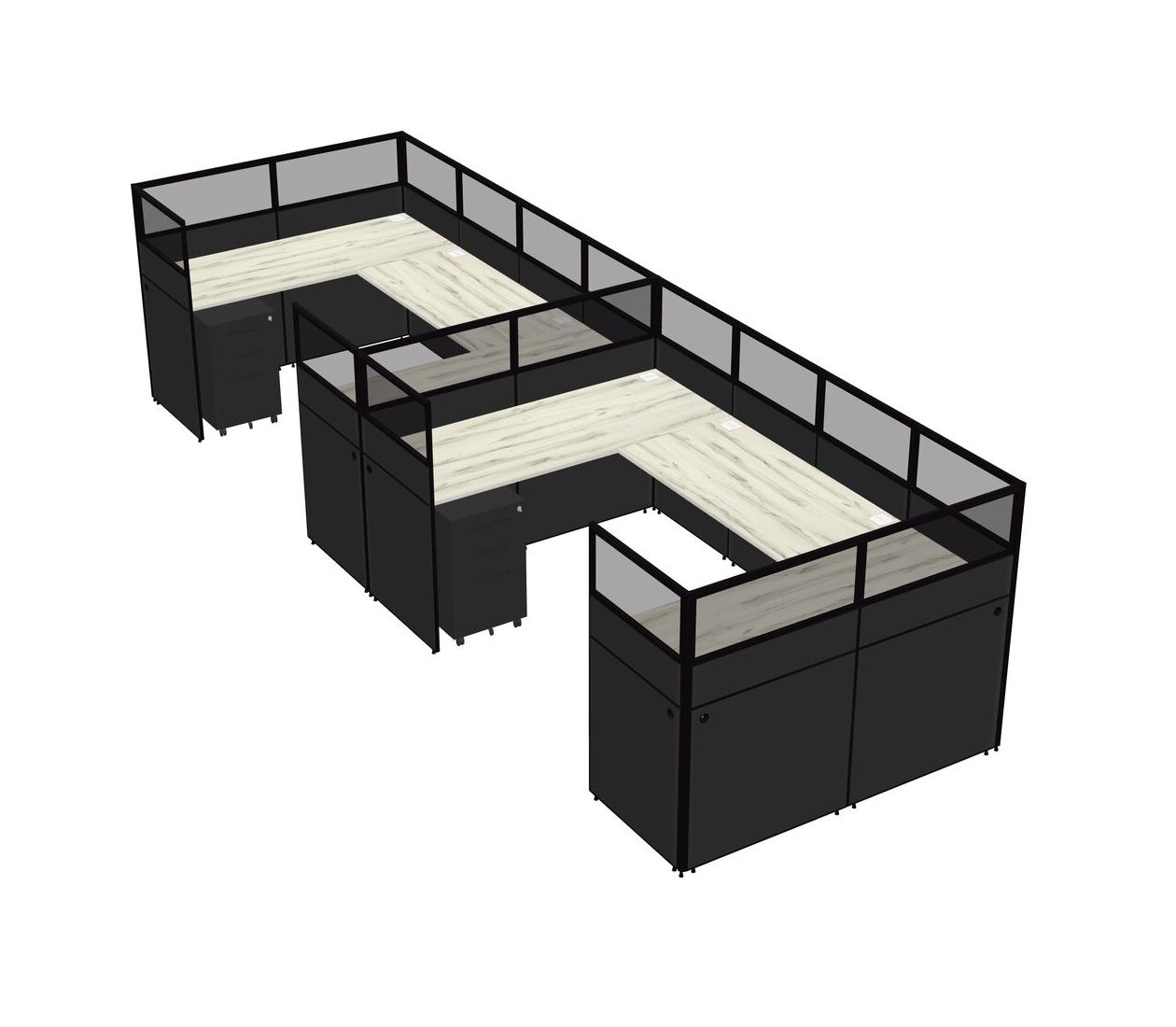 Système De Panneaux En U Heinne Holz Pour 2 Personnes + Tiroirs Mobiles En Métal Pour 2 Utilisateur(s)
