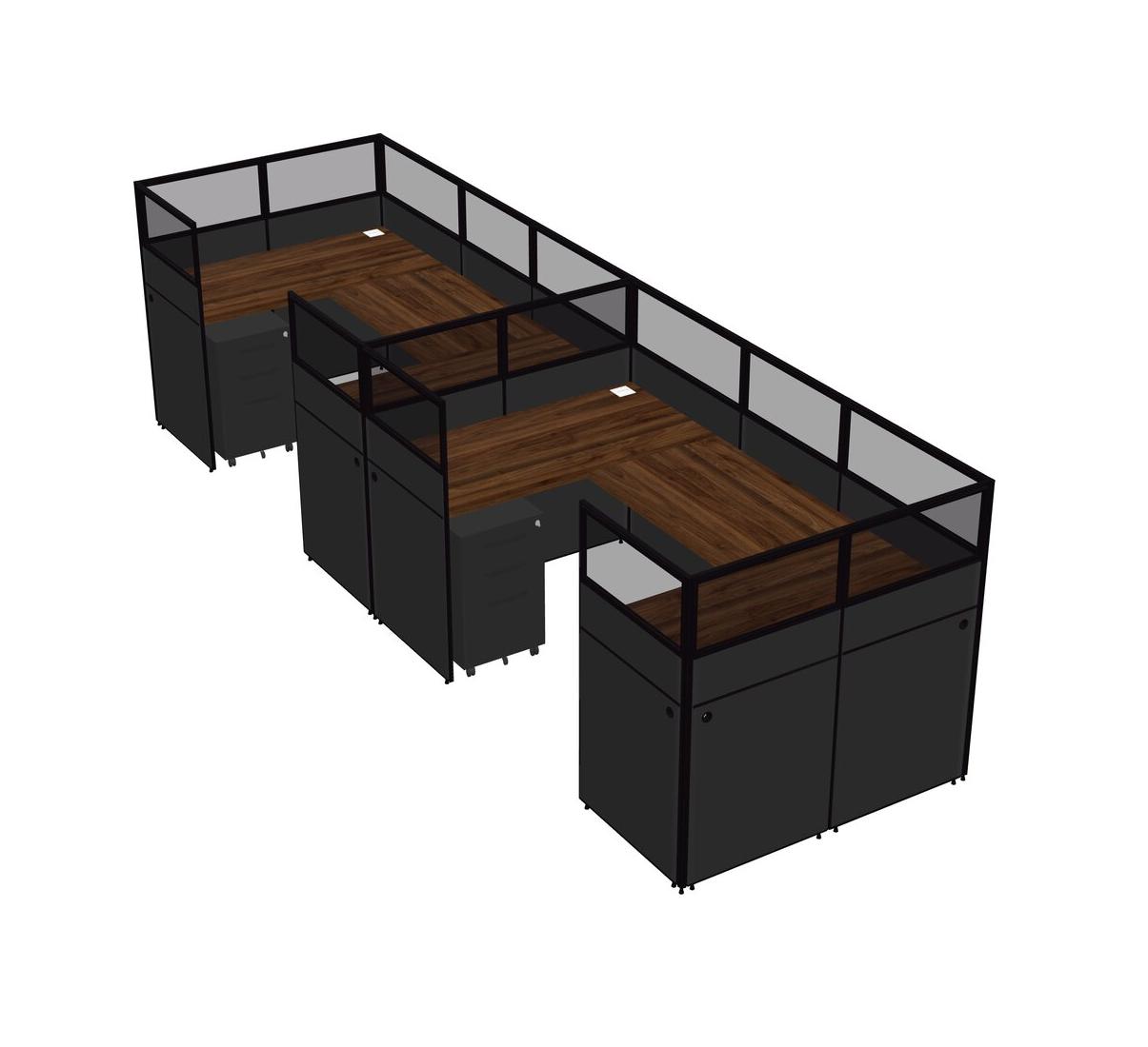 Système De Panneaux En U En Noyer Columbia Pour 2 Personnes + Tiroirs Mobiles En Métal Pour 2 Utilisateurs