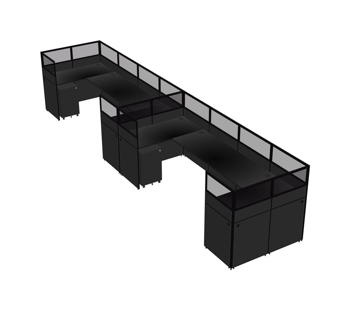 Système De Panneaux En U Noir Pour 2 Personnes + Tiroirs Mobiles En Métal Pour 2 Utilisateur(s)