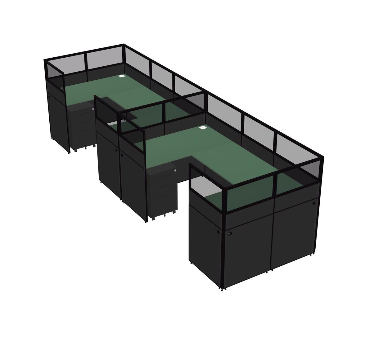 Système De Panneaux En U Vert Pour 2 Personnes + Tiroirs Mobiles En Métal Pour 2 Utilisateur(s)