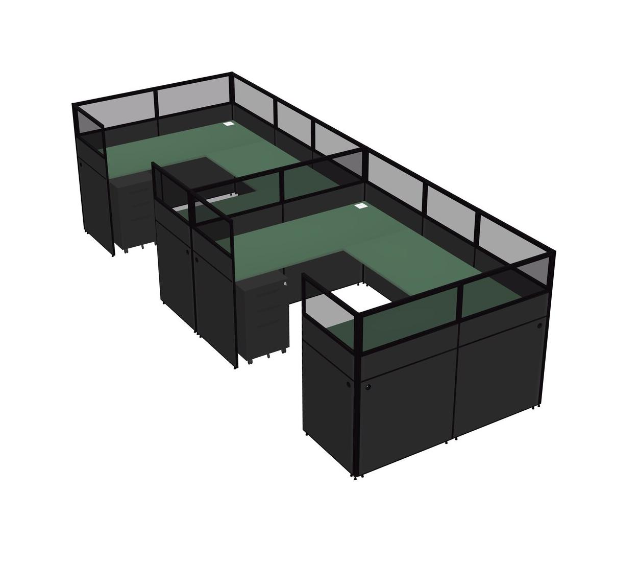 Système De Panneaux En U Vert Pour 2 Personnes + Tiroirs Mobiles En Métal Pour 2 Utilisateur(s)