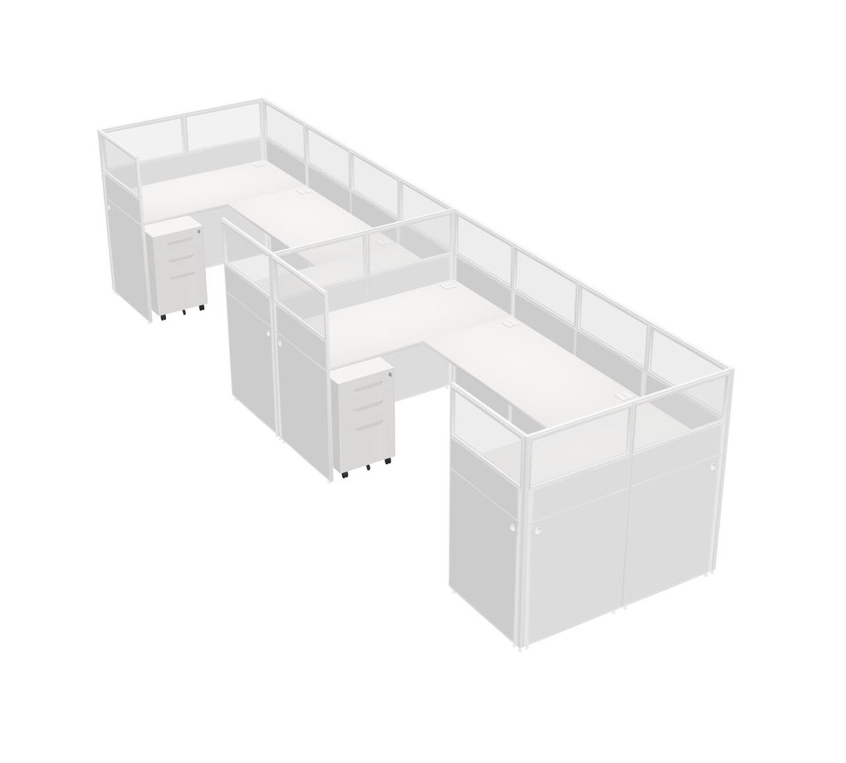 Système De Panneaux En U Blanc Pour 2 Personnes + Tiroirs Mobiles En Métal Pour 2 Utilisateur(s)
