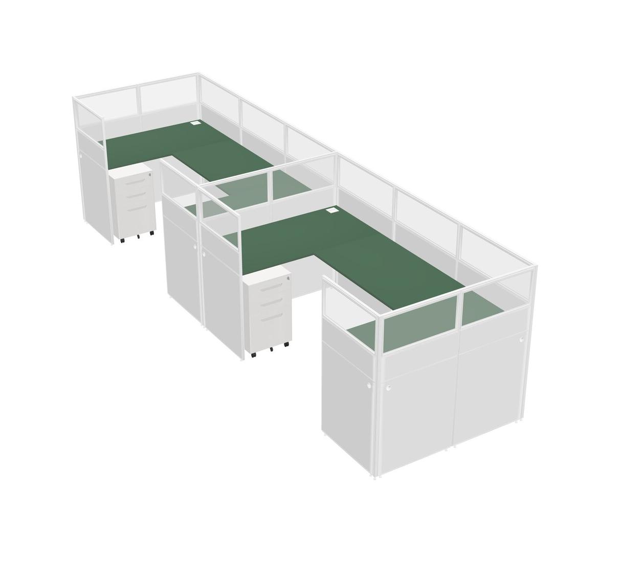 Système De Panneaux En U Vert Pour 2 Personnes + Tiroirs Mobiles En Métal Pour 2 Utilisateur(s)