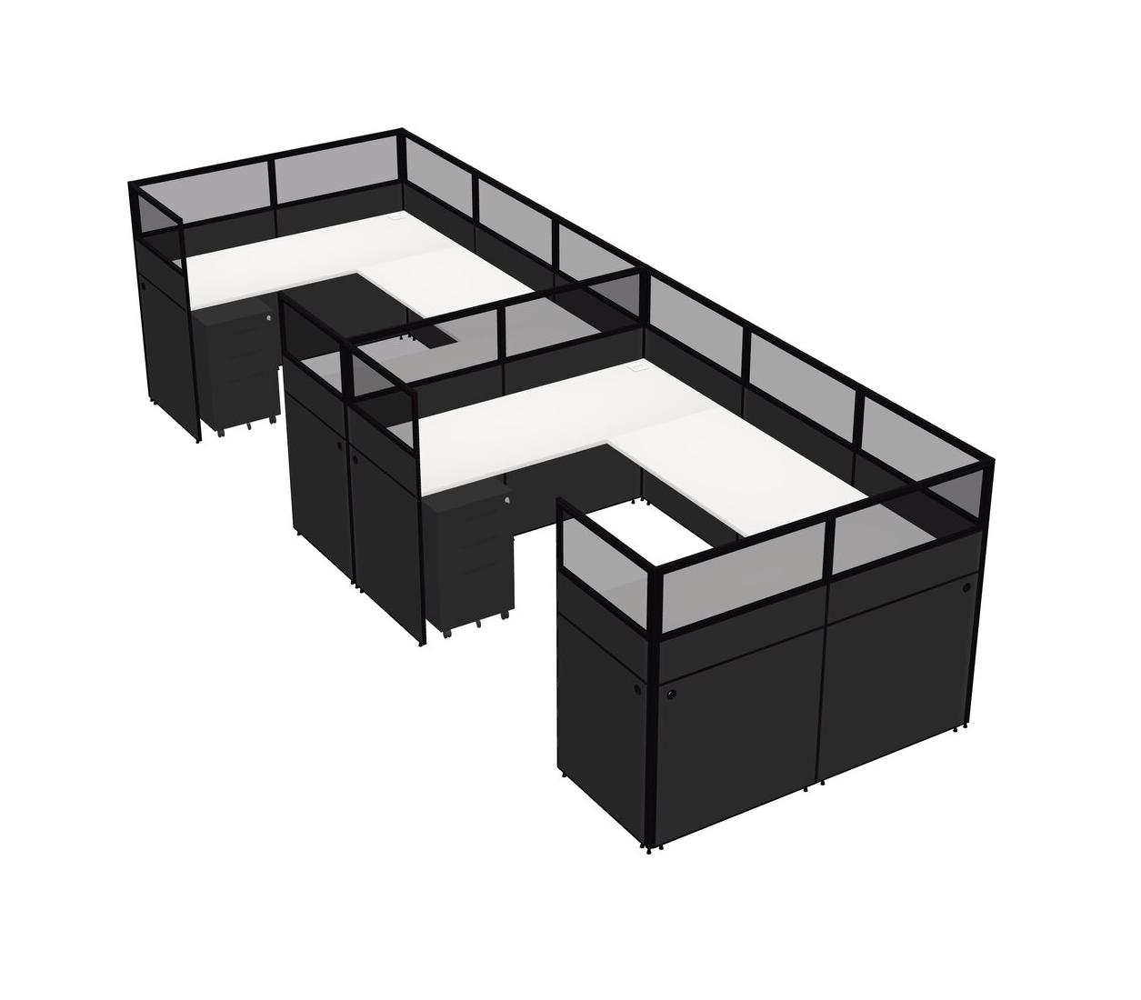 Système De Panneaux En U Blanc Pour 2 Personnes + Tiroirs Mobiles En Métal Pour 2 Utilisateur(s)