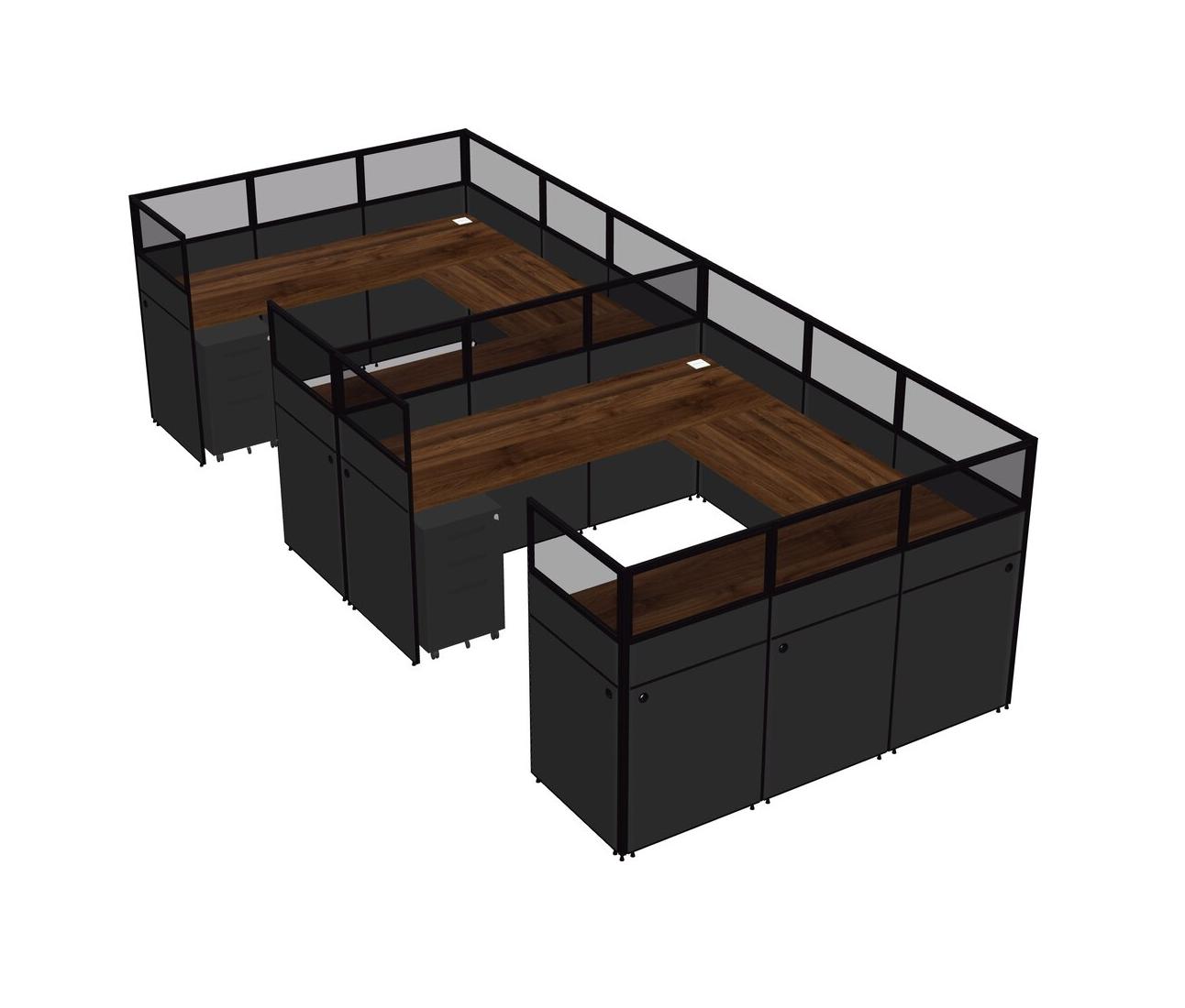 Système De Panneaux En U En Noyer Columbia Pour 2 Personnes + Tiroirs Mobiles En Métal Pour 2 Utilisateurs