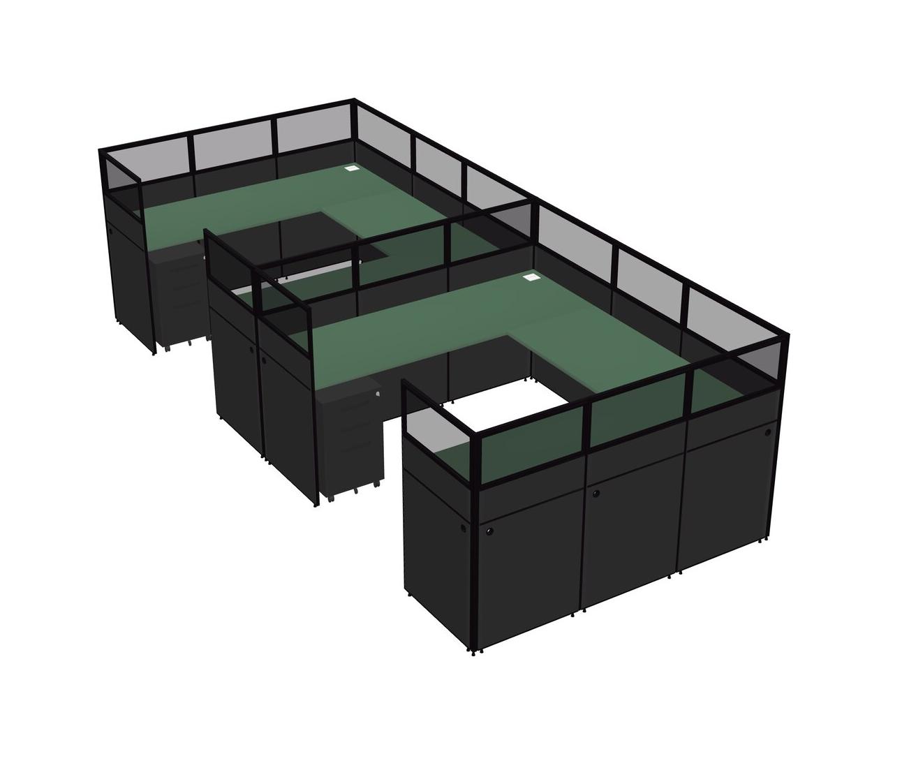 Système De Panneaux En U Vert Pour 2 Personnes + Tiroirs Mobiles En Métal Pour 2 Utilisateur(s)