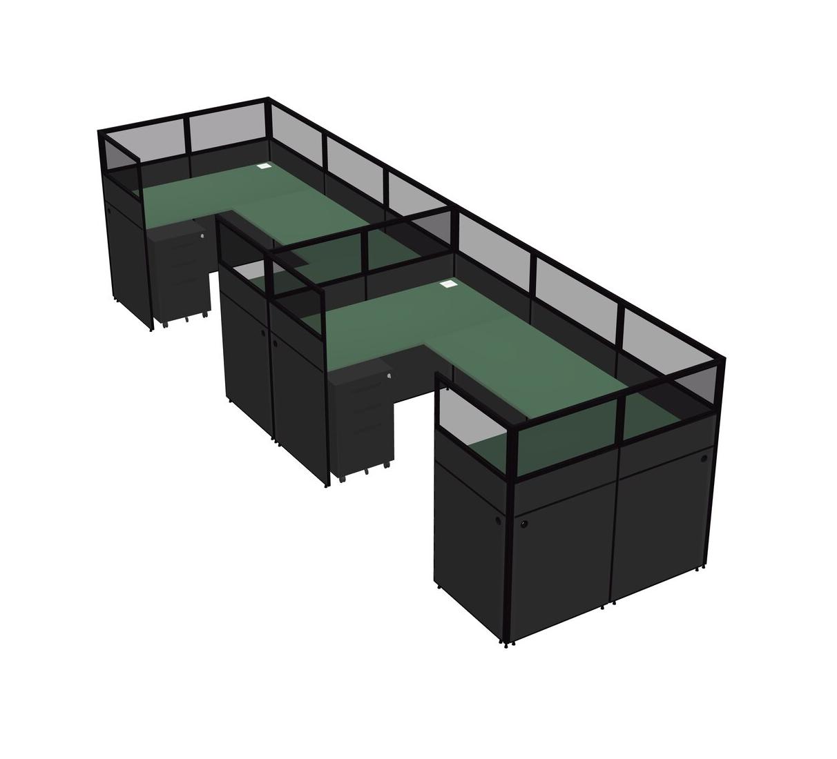 Système De Panneaux En U Vert Pour 2 Personnes + Tiroirs Mobiles En Métal Pour 2 Utilisateur(s)