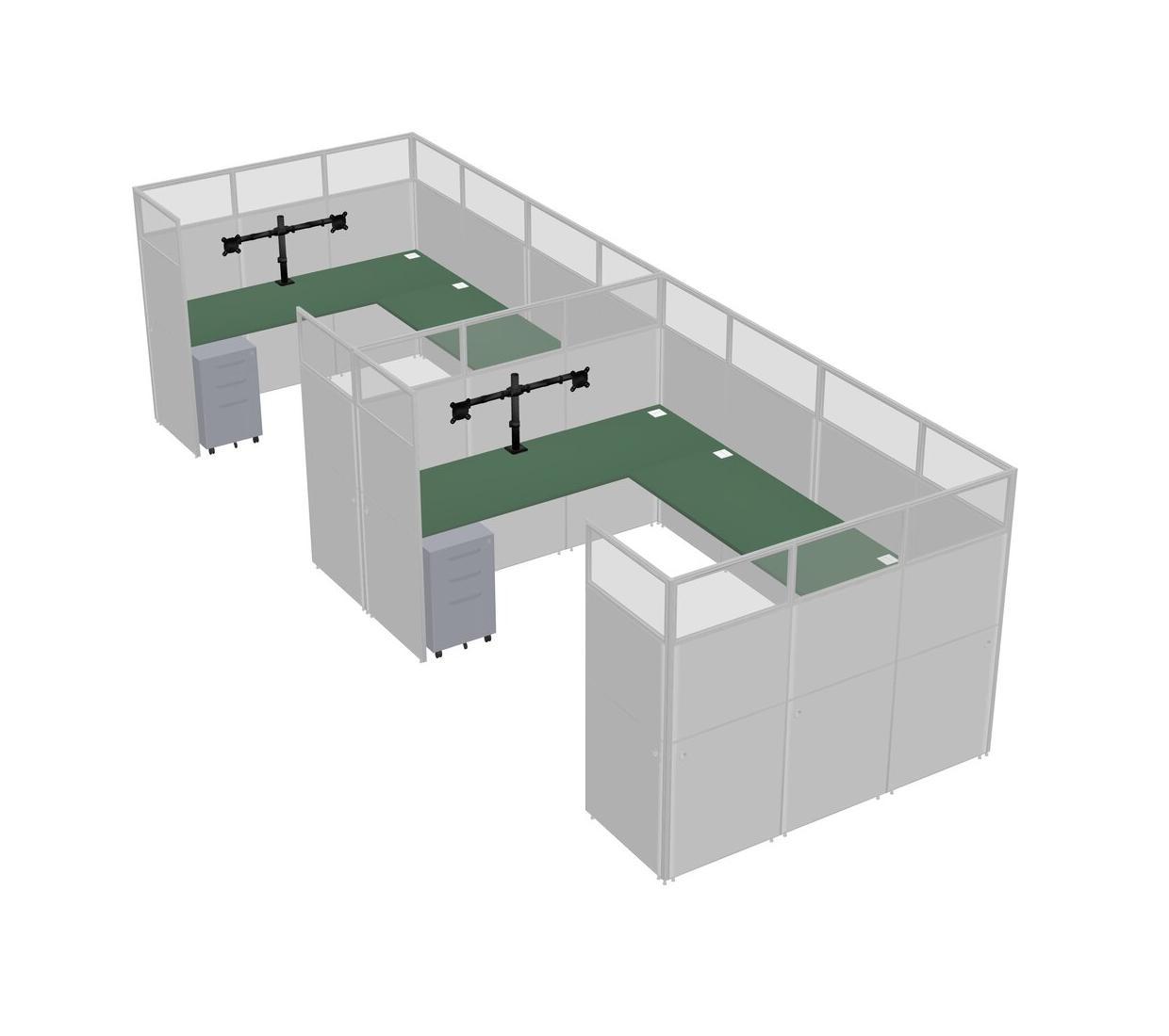Système De Panneaux En U Vert Pour 2 Personnes + Bras De Moniteur (bras Doubles) + Tiroirs Mobiles En Métal Pour 2 Utilisateur(s)