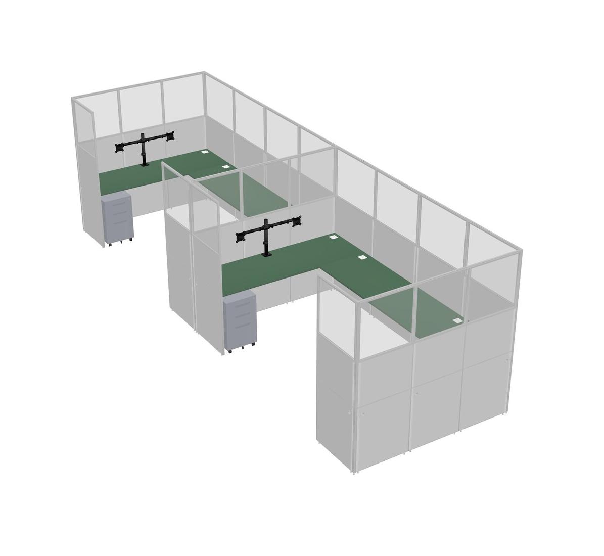 Système De Panneaux En U Vert Pour 2 Personnes + Bras De Moniteur (bras Doubles) + Tiroirs Mobiles En Métal Pour 2 Utilisateur(s)