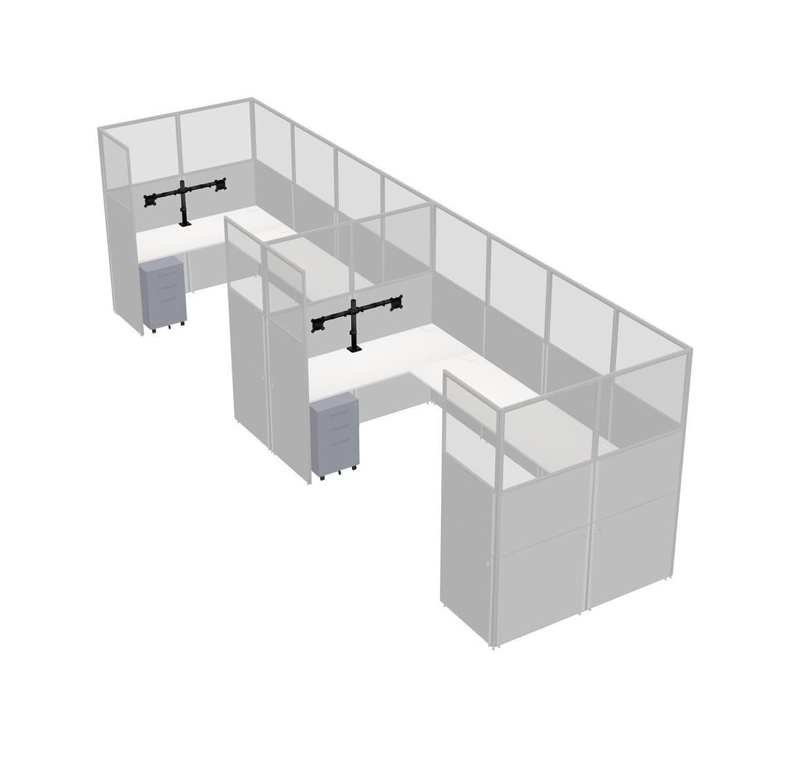 Système De Panneaux En U Blanc Pour 2 Personnes + Bras D'écran (bras Doubles) + Tiroirs Mobiles En Métal Pour 2 Utilisateurs