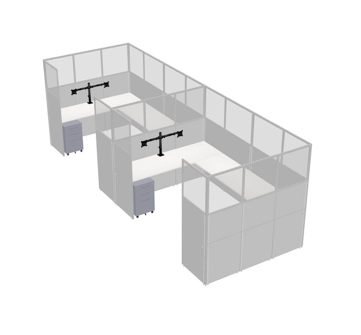 Système De Panneaux En U Blanc Pour 2 Personnes + Bras D'écran (bras Doubles) + Tiroirs Mobiles En Métal Pour 2 Utilisateurs