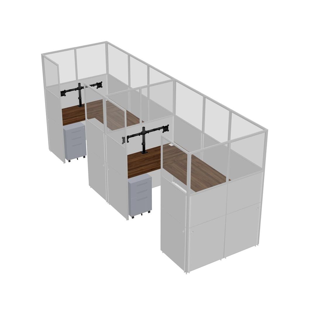 Système De Panneaux En U En Noyer Columbia Pour 2 Personnes + Bras D'écran (bras Doubles) + Tiroirs Mobiles En Métal Pour 2 Utilisateurs