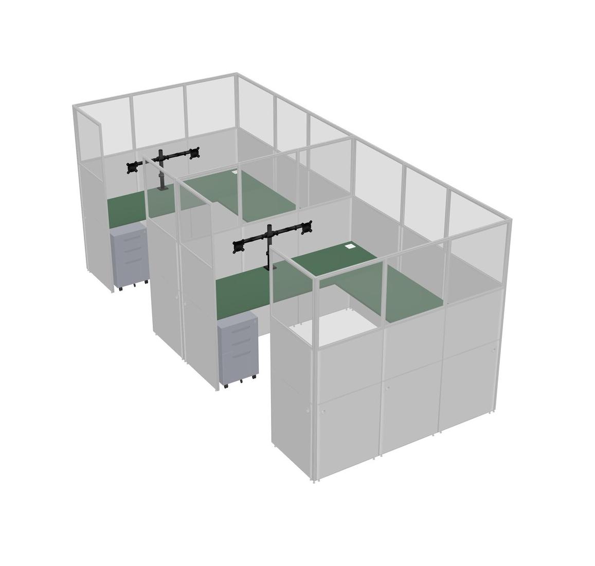Système De Panneaux En U Vert Pour 2 Personnes + Bras De Moniteur (bras Doubles) + Tiroirs Mobiles En Métal Pour 2 Utilisateur(s)