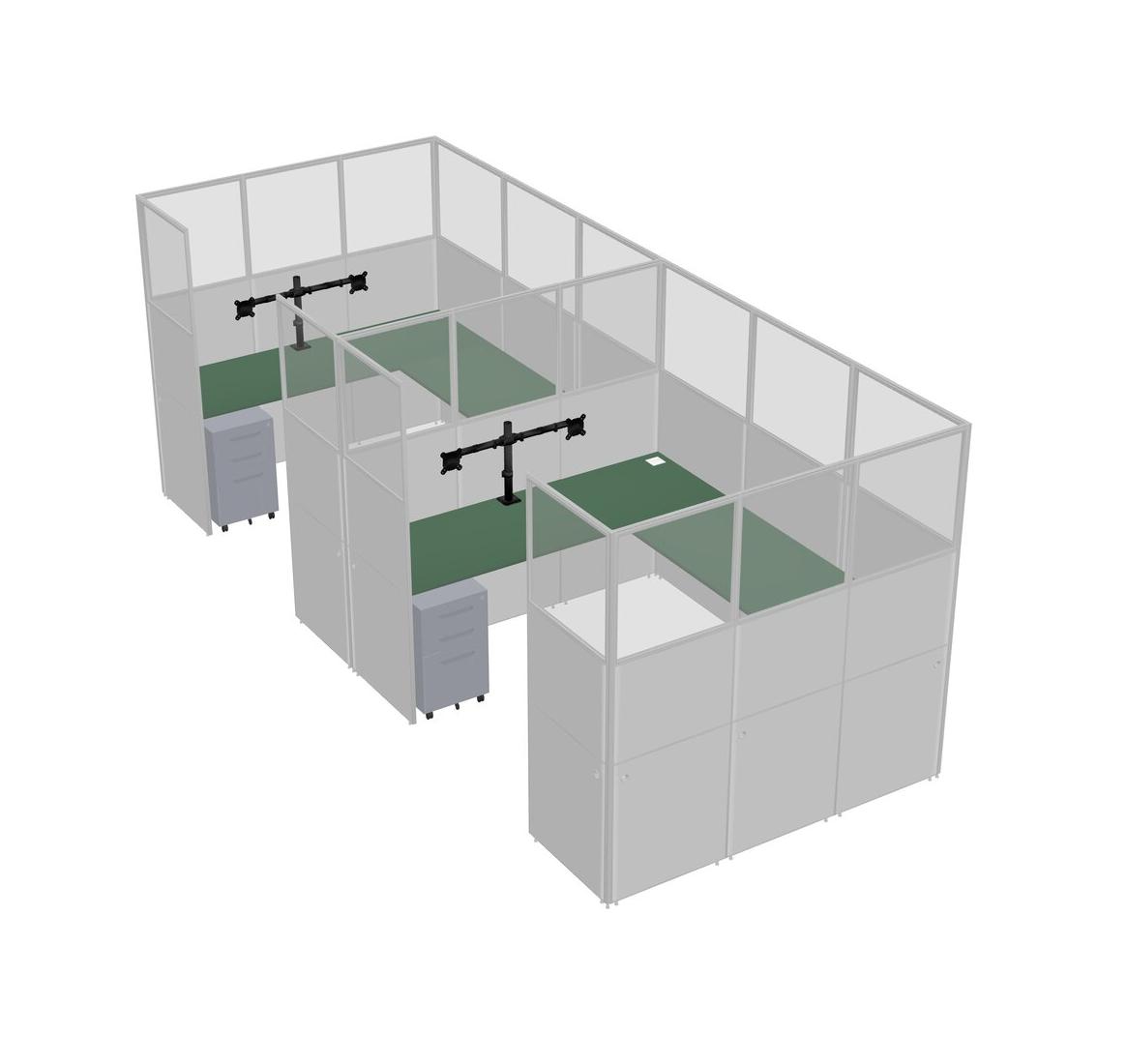 Système De Panneaux En U Vert Pour 2 Personnes + Bras De Moniteur (bras Doubles) + Tiroirs Mobiles En Métal Pour 2 Utilisateur(s)