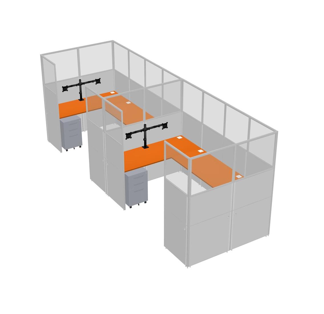 Système De Panneaux En U Orange Pour 2 Personnes + Bras De Moniteur (bras Doubles) + Tiroirs Mobiles En Métal Pour 2 Utilisateur(s)
