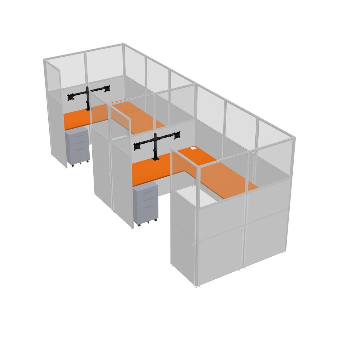 Système De Panneaux En U Orange Pour 2 Personnes + Bras De Moniteur (bras Doubles) + Tiroirs Mobiles En Métal Pour 2 Utilisateur(s)