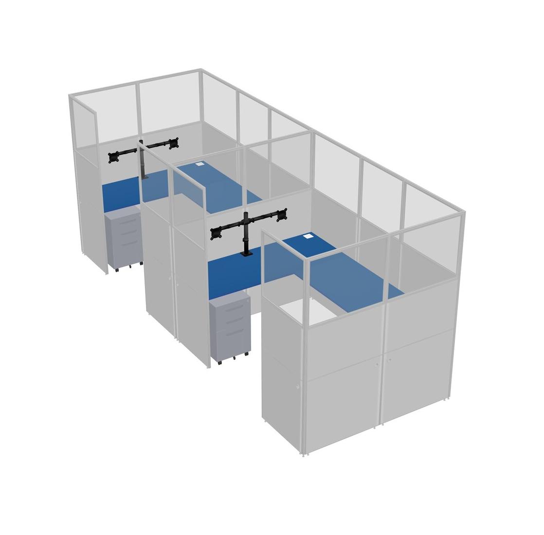 Système De Panneaux En U Prism Blue Pour 2 Personnes + Bras D'écran (bras Doubles) + Tiroirs Mobiles En Métal Pour 2 Utilisateurs