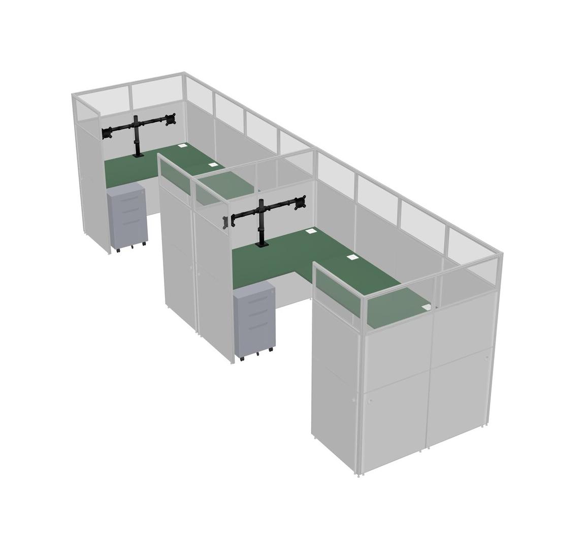 Système De Panneaux En U Vert Pour 2 Personnes + Bras De Moniteur (bras Doubles) + Tiroirs Mobiles En Métal Pour 2 Utilisateur(s)