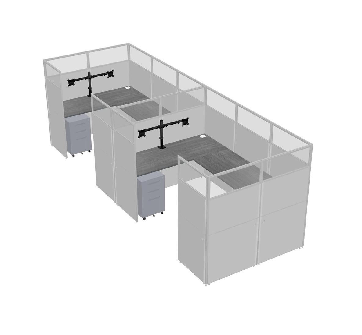 Système De Panneaux En U Gris Pour 2 Personnes + Bras D'écran (bras Doubles) + Tiroirs Mobiles En Métal Pour 2 Utilisateurs