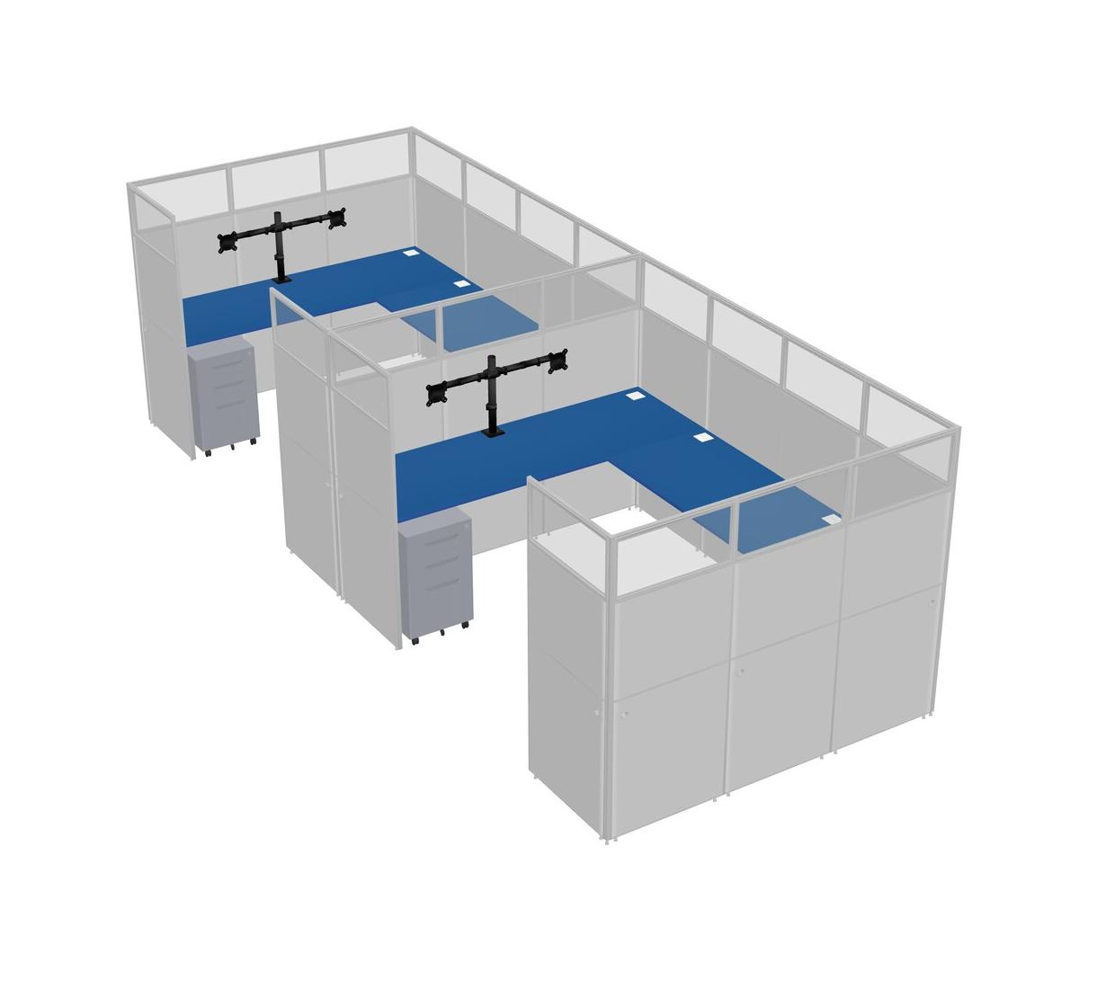 Système De Panneaux En U Prism Blue Pour 2 Personnes + Bras D'écran (bras Doubles) + Tiroirs Mobiles En Métal Pour 2 Utilisateurs