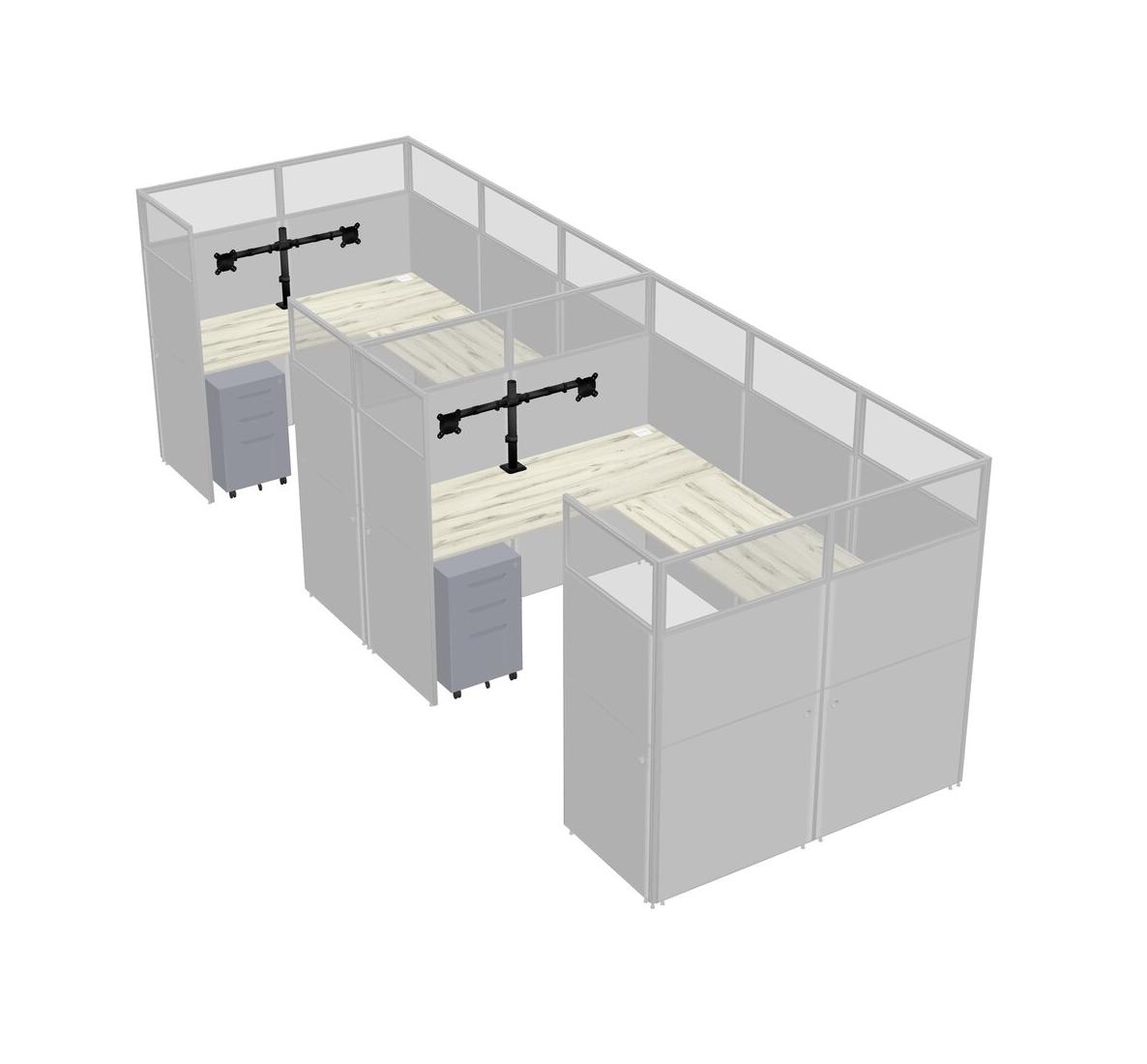 Système De Panneaux En U Heinne Holz Pour 2 Personnes + Bras D'écran (bras Doubles) + Tiroirs Mobiles En Métal Pour 2 Utilisateur(s)