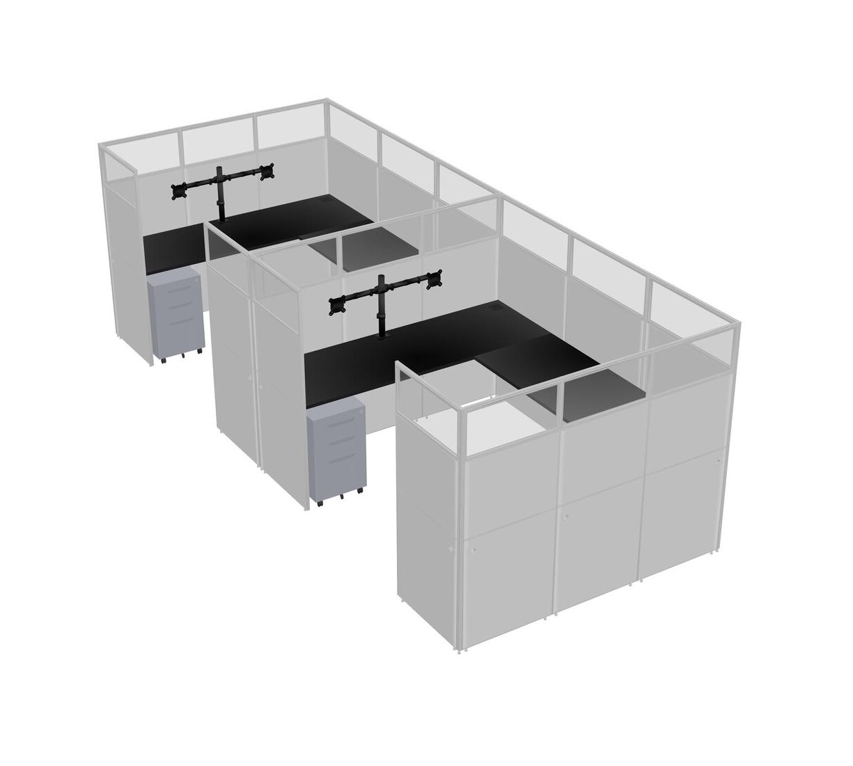 Système De Panneaux En U Noir Pour 2 Personnes + Bras D'écran (bras Doubles) + Tiroirs Mobiles En Métal Pour 2 Utilisateur(s)