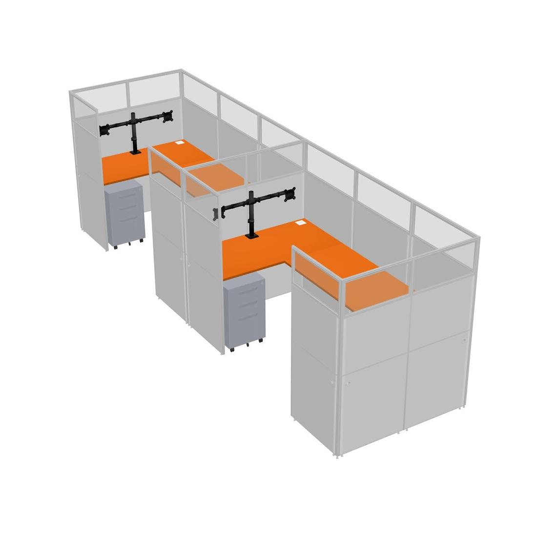 Système De Panneaux En U Orange Pour 2 Personnes + Bras De Moniteur (bras Doubles) + Tiroirs Mobiles En Métal Pour 2 Utilisateur(s)