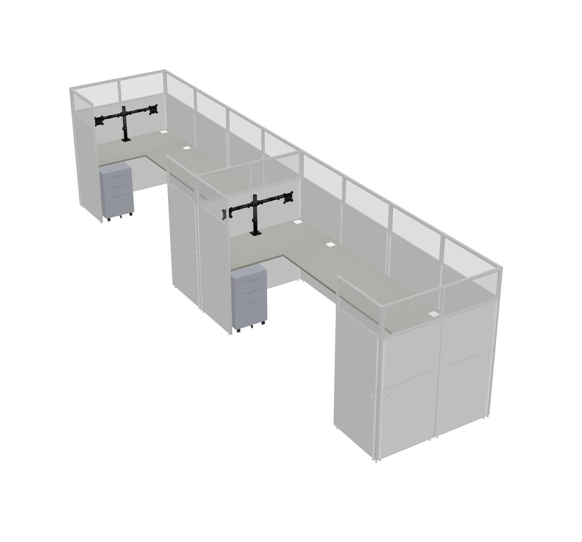 Système De Panneaux En U Grey Shadows Pour 2 Personnes + Bras D'écran (bras Doubles) + Tiroirs Mobiles En Métal Pour 2 Utilisateur(s)