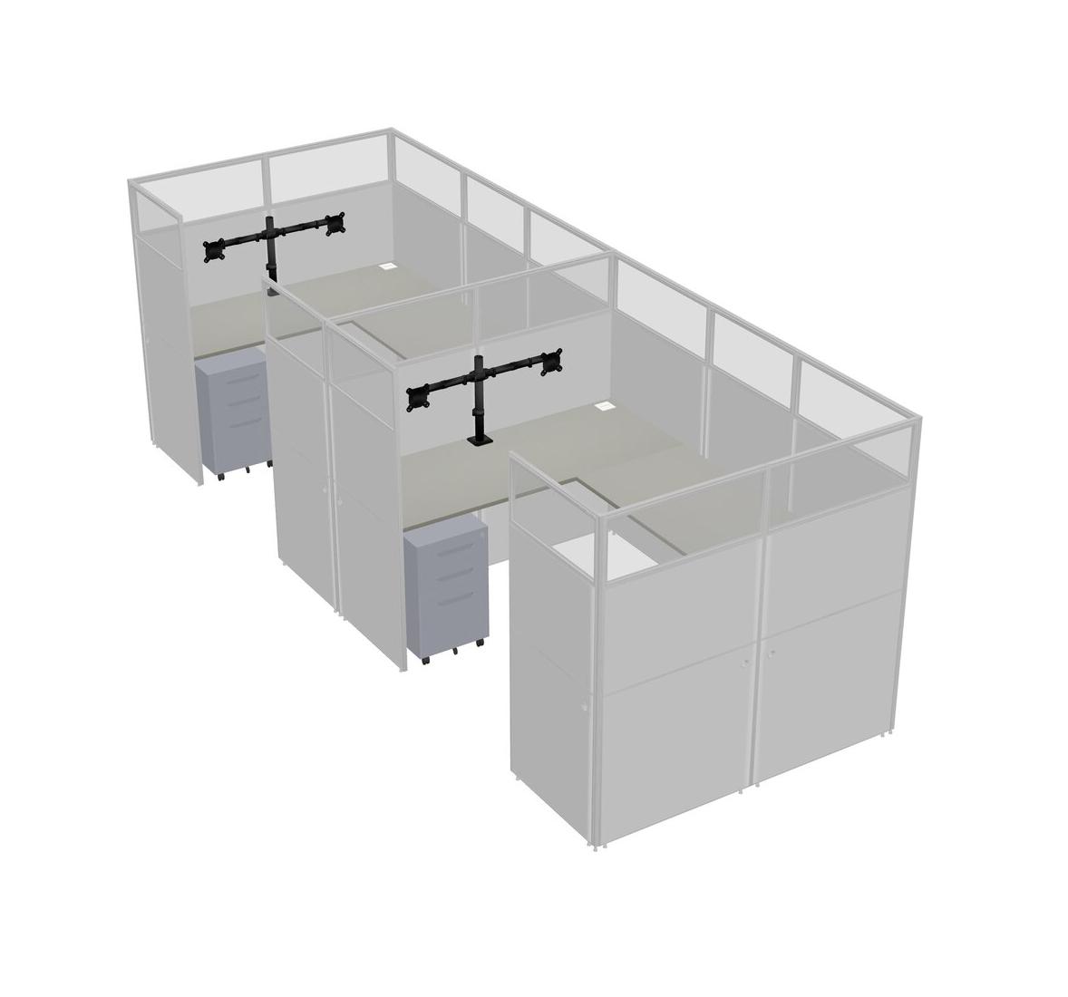 Système De Panneaux En U Grey Shadows Pour 2 Personnes + Bras D'écran (bras Doubles) + Tiroirs Mobiles En Métal Pour 2 Utilisateur(s)