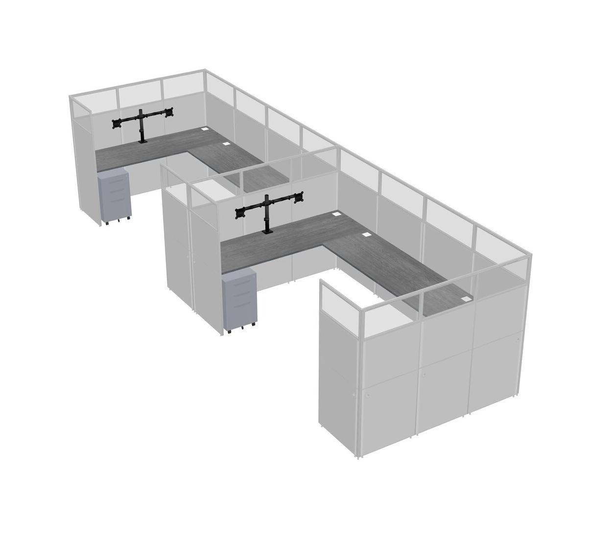 Système De Panneaux En U Gris Pour 2 Personnes + Bras D'écran (bras Doubles) + Tiroirs Mobiles En Métal Pour 2 Utilisateurs