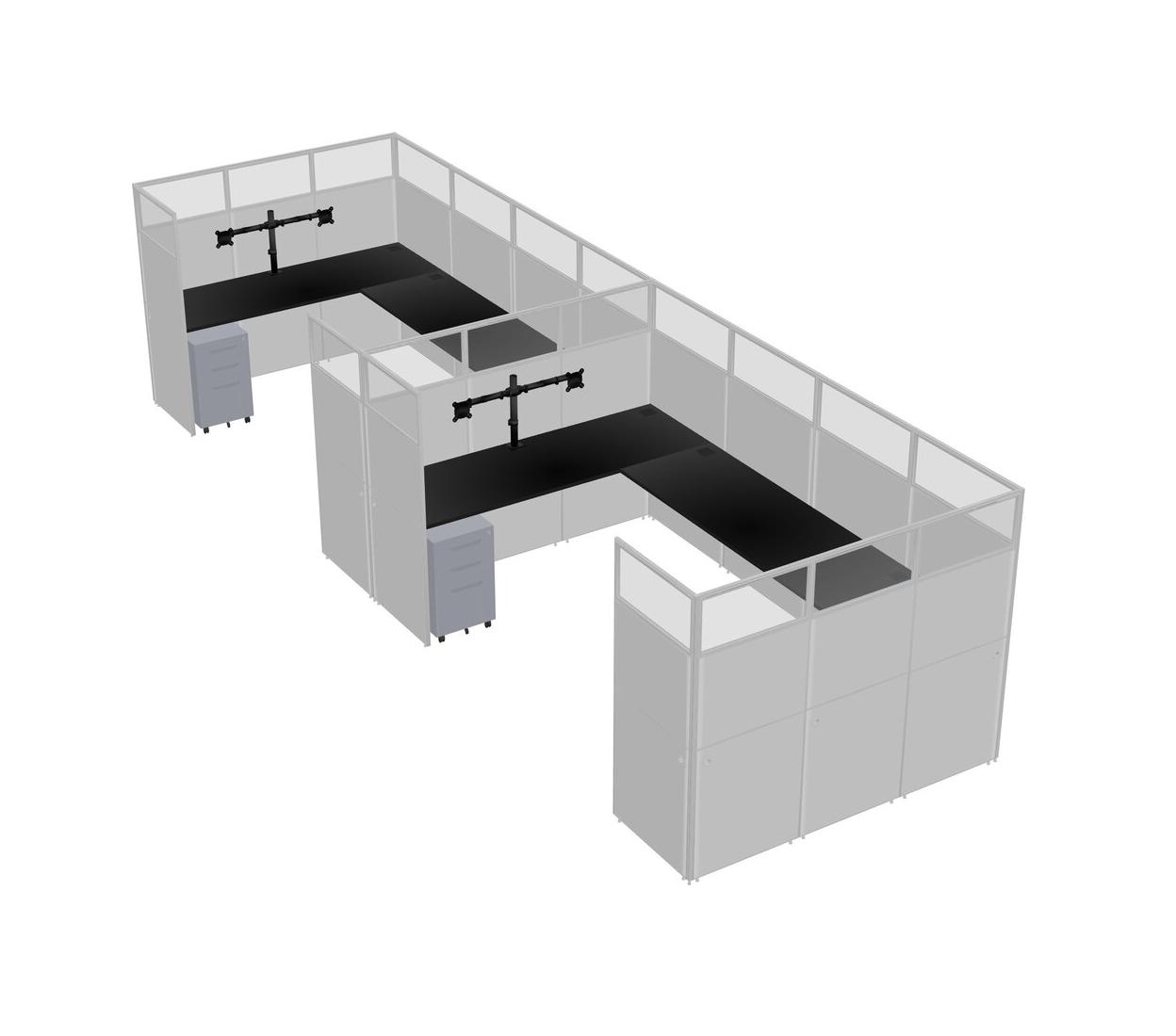 Système De Panneaux En U Noir Pour 2 Personnes + Bras D'écran (bras Doubles) + Tiroirs Mobiles En Métal Pour 2 Utilisateur(s)