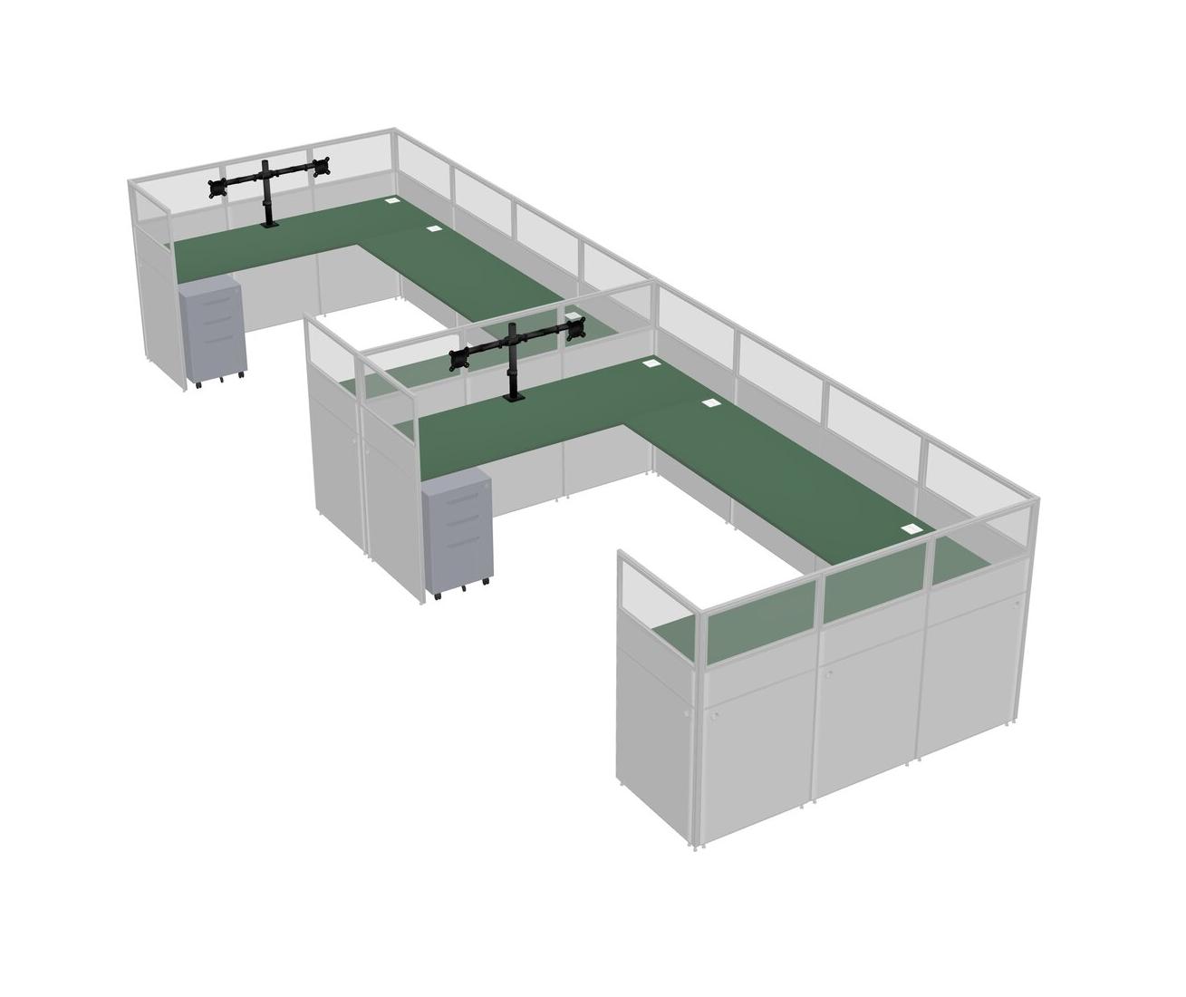 Système De Panneaux En U Vert Pour 2 Personnes + Bras De Moniteur (bras Doubles) + Tiroirs Mobiles En Métal Pour 2 Utilisateur(s)