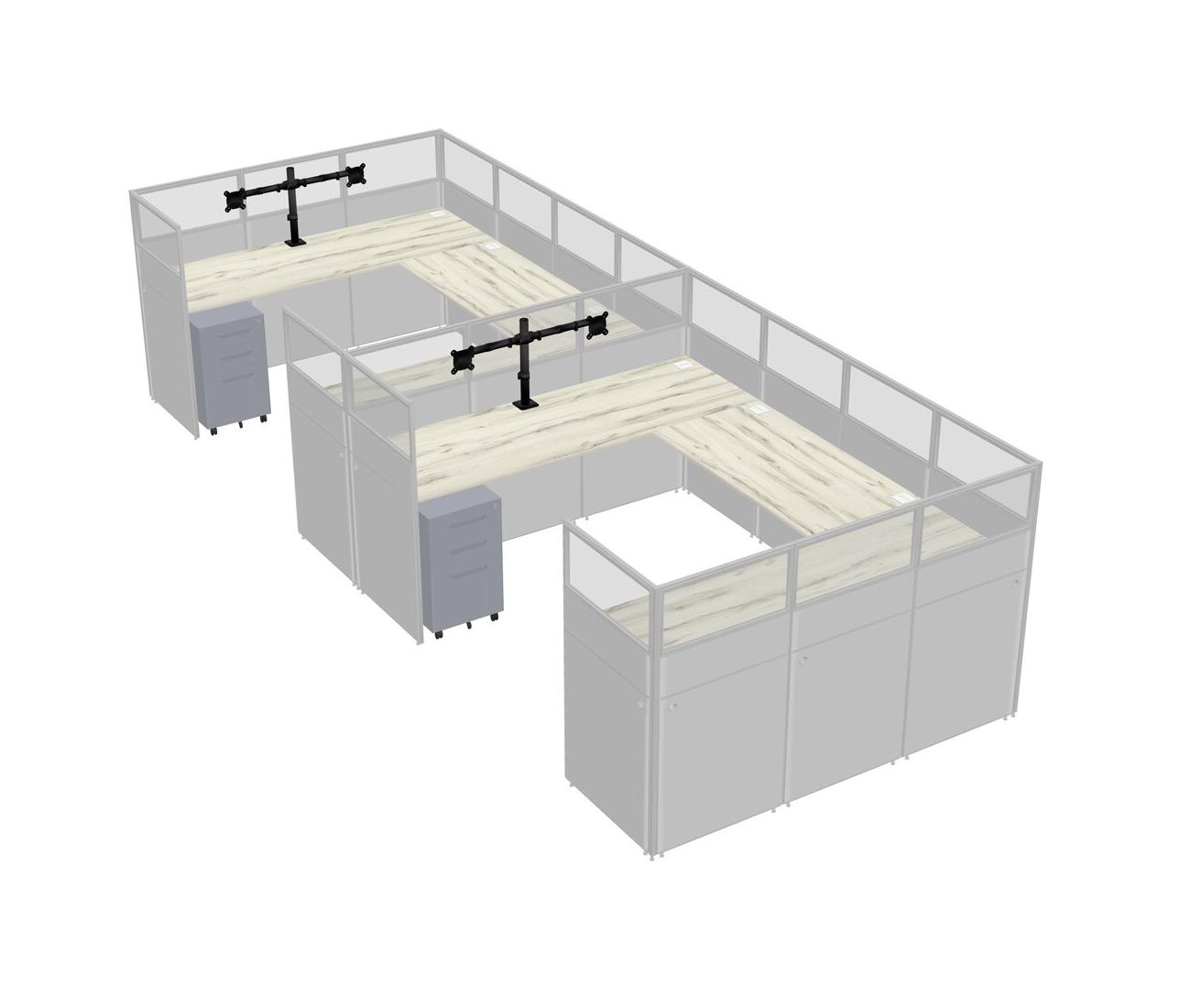 Système De Panneaux En U Heinne Holz Pour 2 Personnes + Bras D'écran (bras Doubles) + Tiroirs Mobiles En Métal Pour 2 Utilisateur(s)