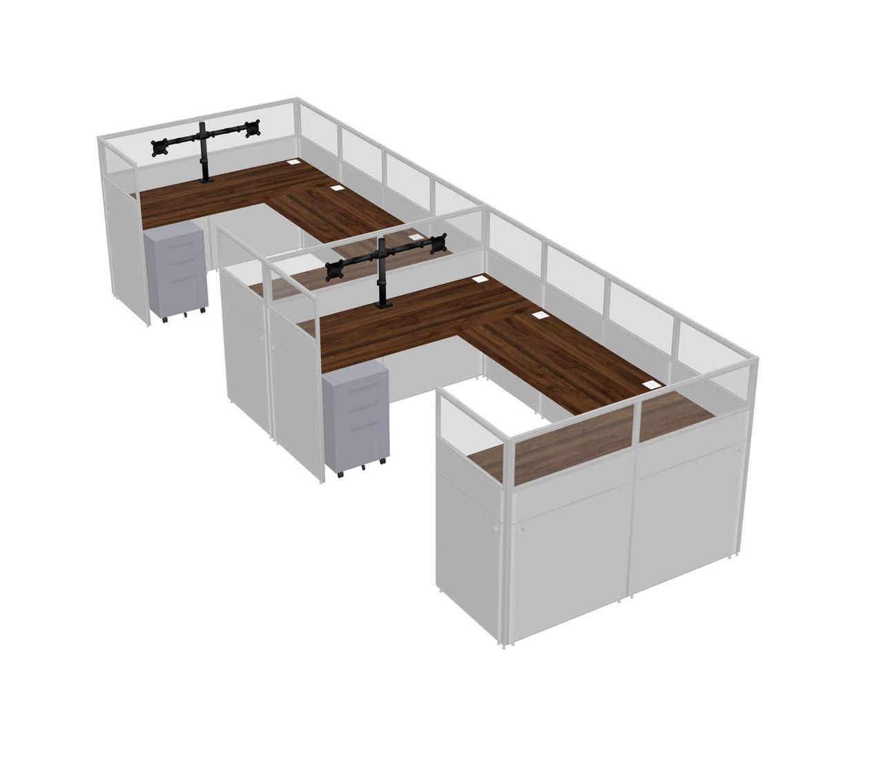 Système De Panneaux En U En Noyer Columbia Pour 2 Personnes + Bras D'écran (bras Doubles) + Tiroirs Mobiles En Métal Pour 2 Utilisateurs