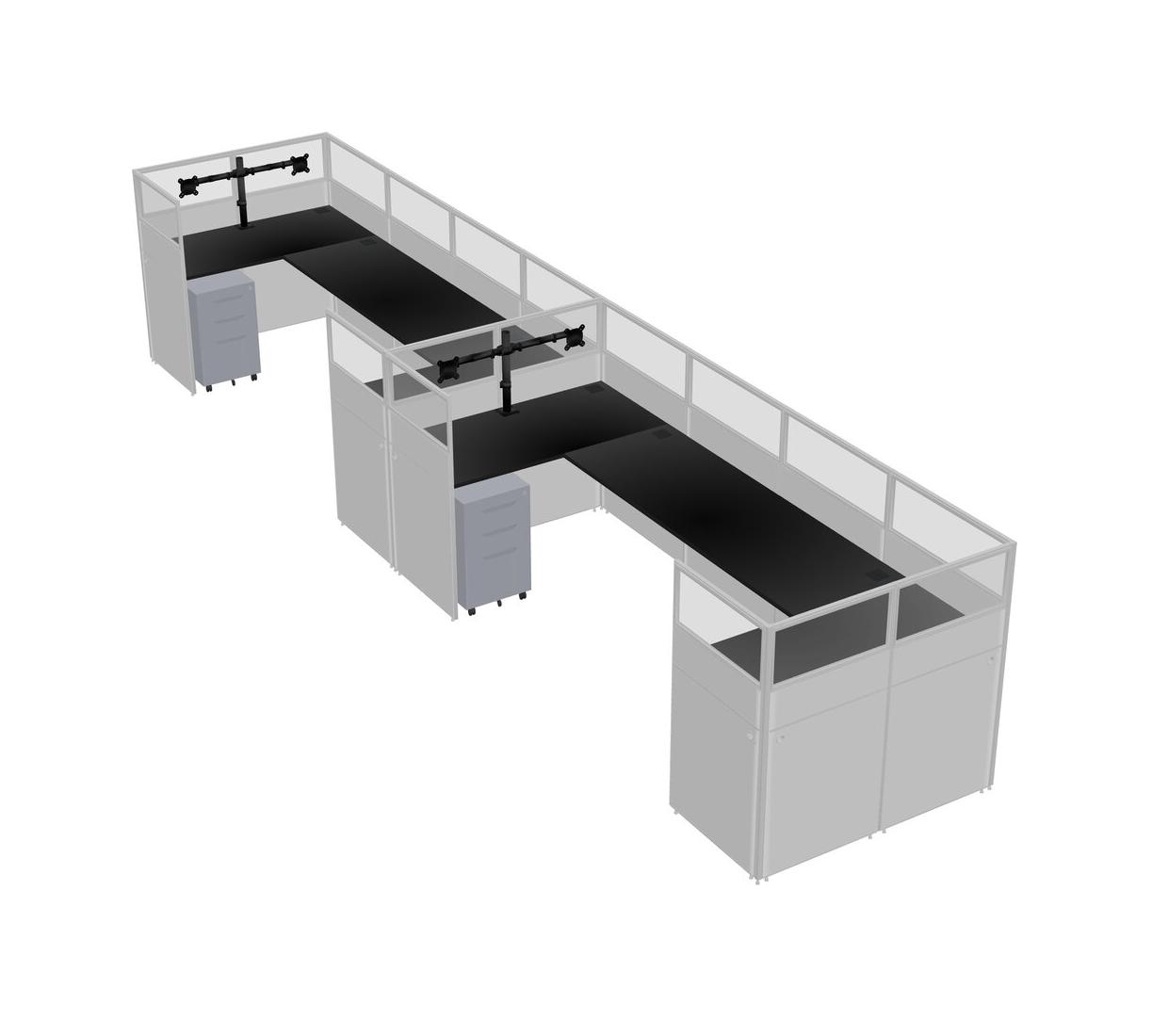 Système De Panneaux En U Noir Pour 2 Personnes + Bras D'écran (bras Doubles) + Tiroirs Mobiles En Métal Pour 2 Utilisateur(s)