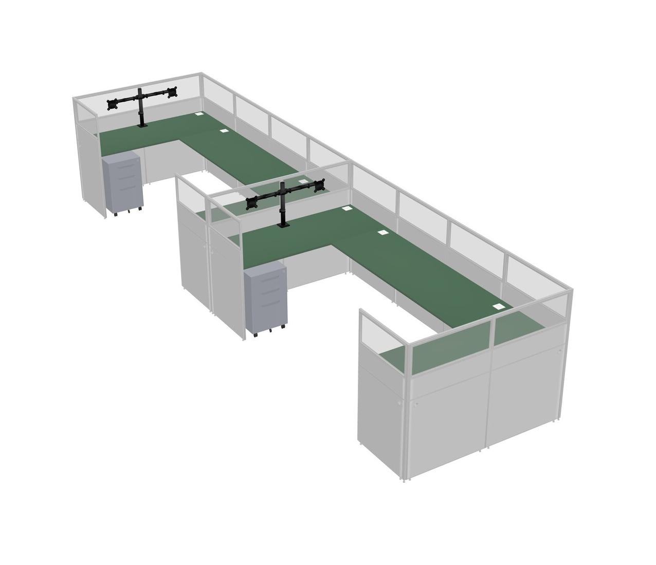 Système De Panneaux En U Vert Pour 2 Personnes + Bras De Moniteur (bras Doubles) + Tiroirs Mobiles En Métal Pour 2 Utilisateur(s)