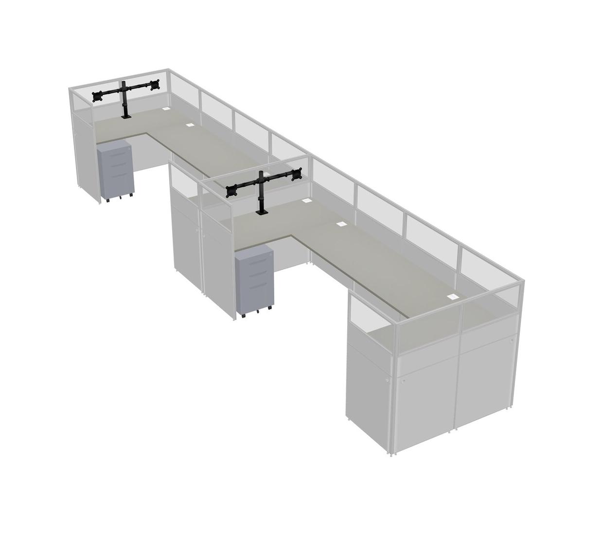 Système De Panneaux En U Grey Shadows Pour 2 Personnes + Bras D'écran (bras Doubles) + Tiroirs Mobiles En Métal Pour 2 Utilisateur(s)