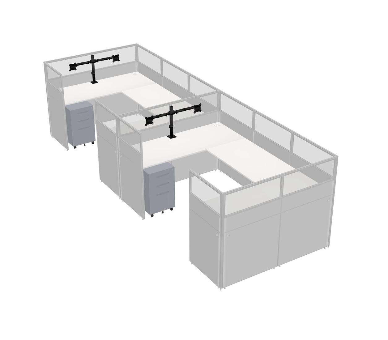 Système De Panneaux En U Blanc Pour 2 Personnes + Bras D'écran (bras Doubles) + Tiroirs Mobiles En Métal Pour 2 Utilisateurs