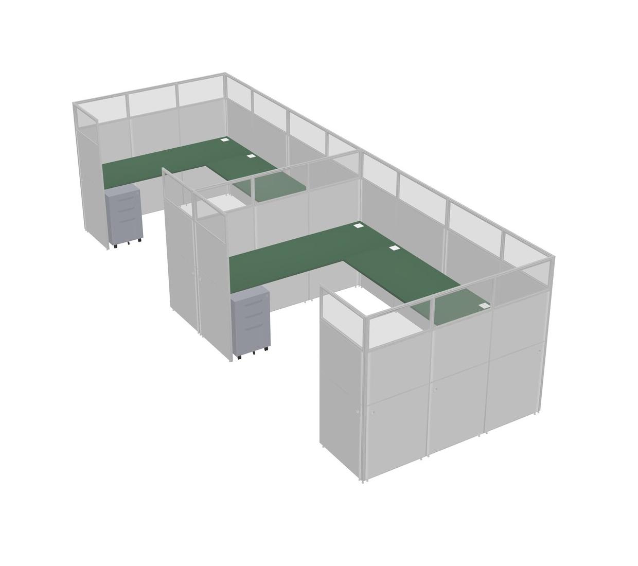 Système De Panneaux En U Vert Pour 2 Personnes + Tiroirs Mobiles En Métal Pour 2 Utilisateur(s)