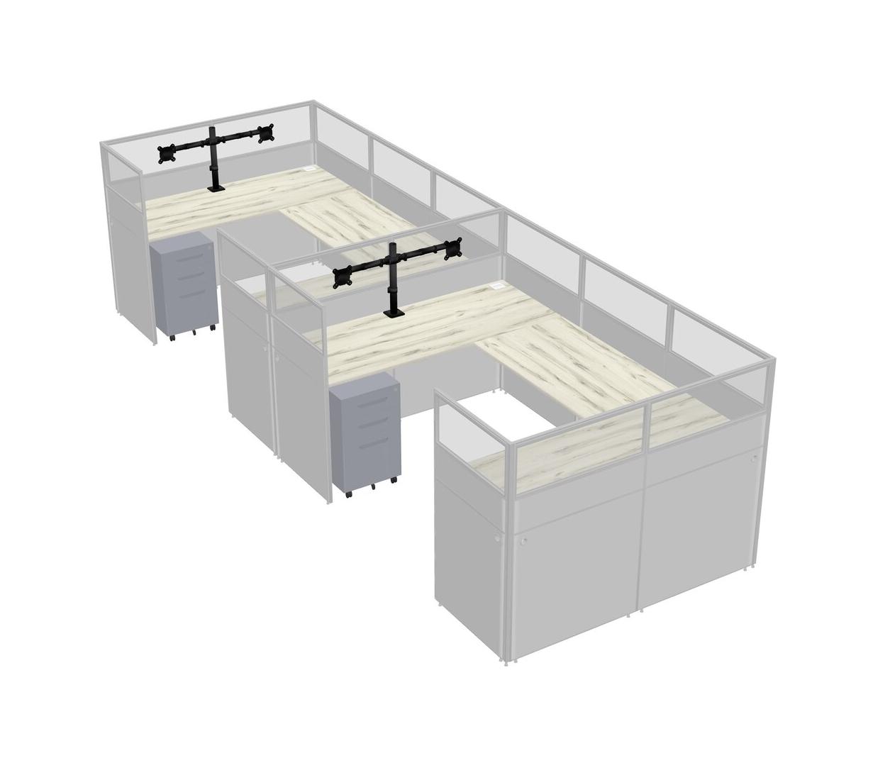 Système De Panneaux En U Heinne Holz Pour 2 Personnes + Bras D'écran (bras Doubles) + Tiroirs Mobiles En Métal Pour 2 Utilisateur(s)