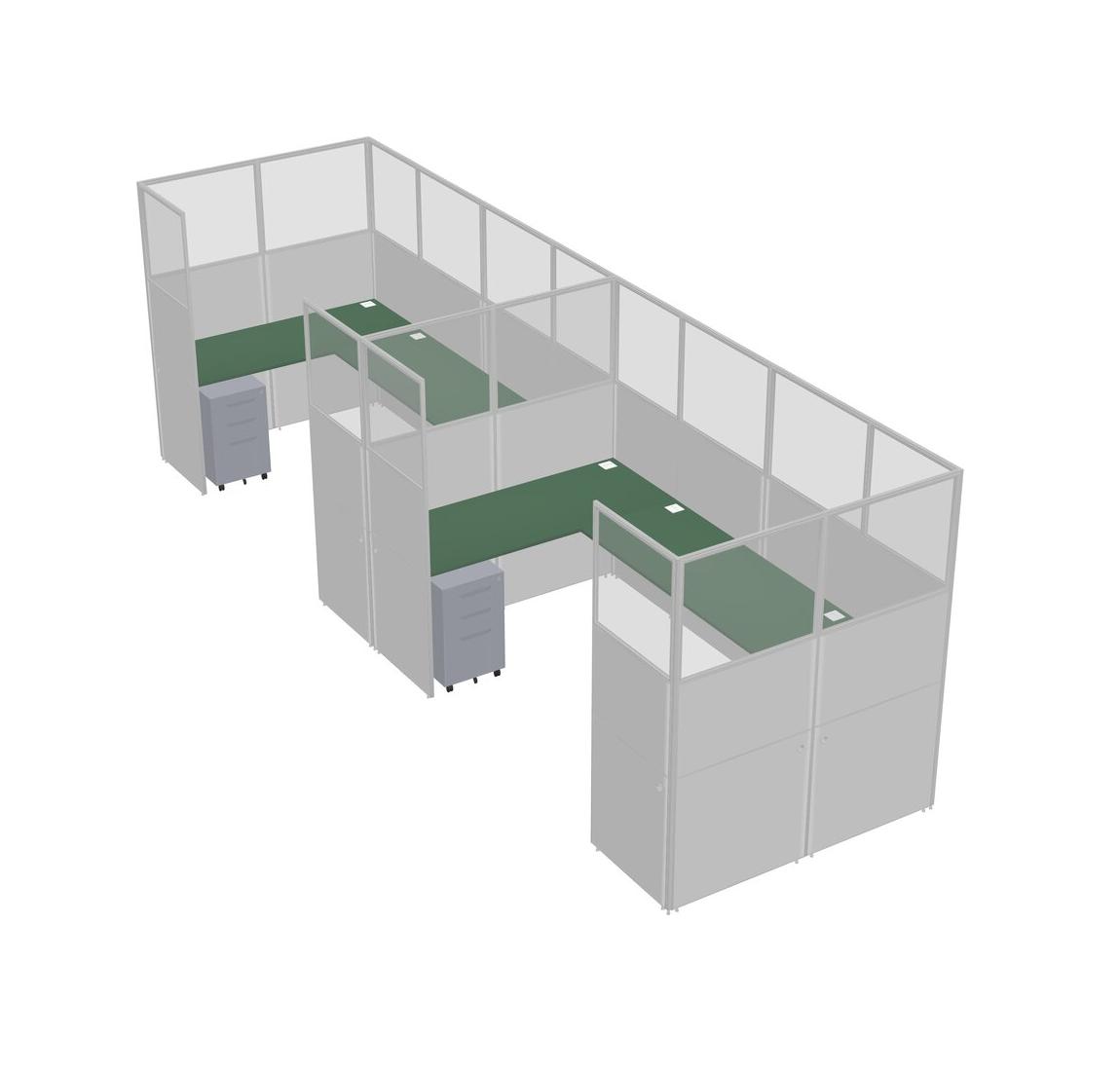 Système De Panneaux En U Vert Pour 2 Personnes + Tiroirs Mobiles En Métal Pour 2 Utilisateur(s)
