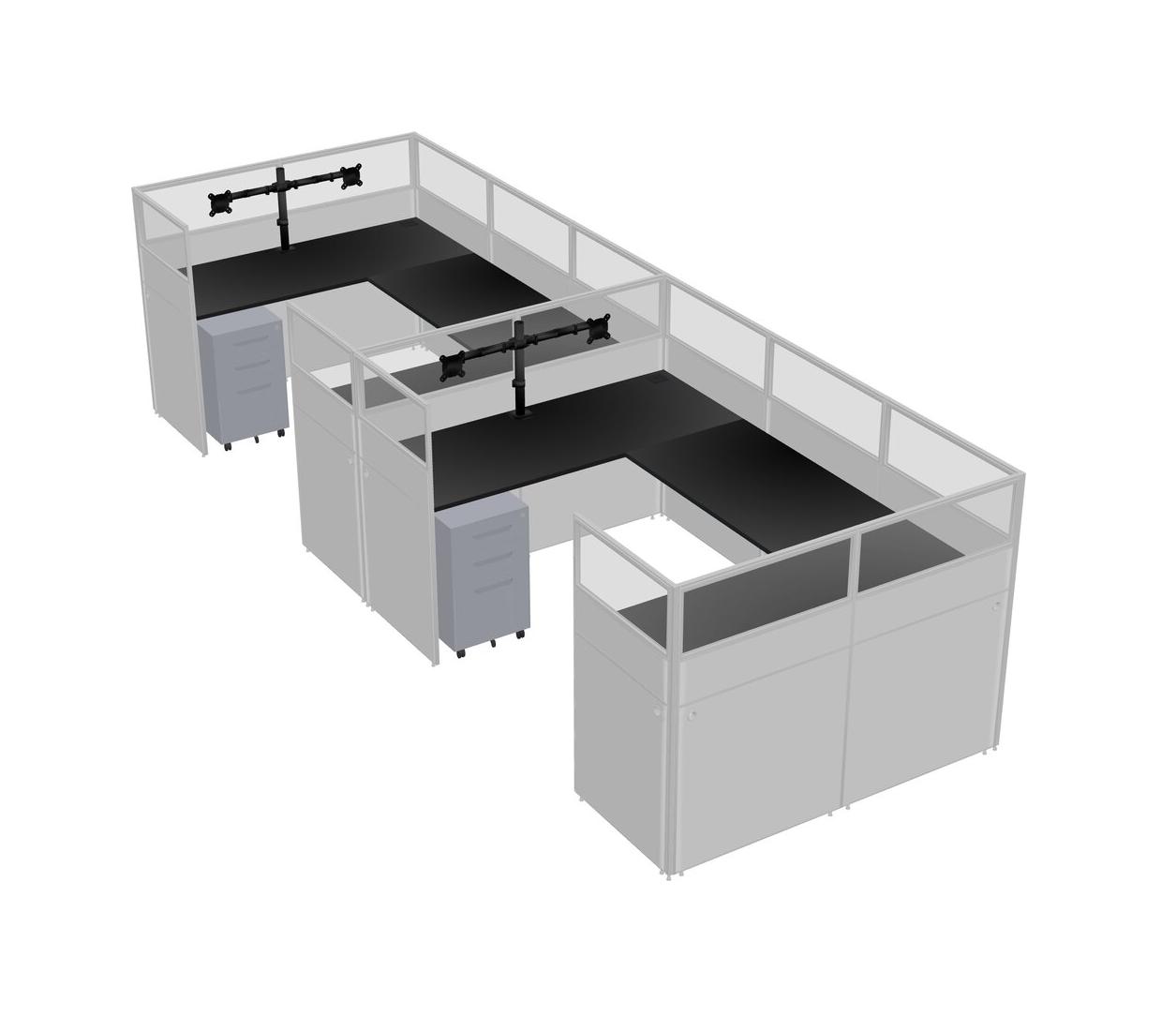 Système De Panneaux En U Noir Pour 2 Personnes + Bras D'écran (bras Doubles) + Tiroirs Mobiles En Métal Pour 2 Utilisateur(s)