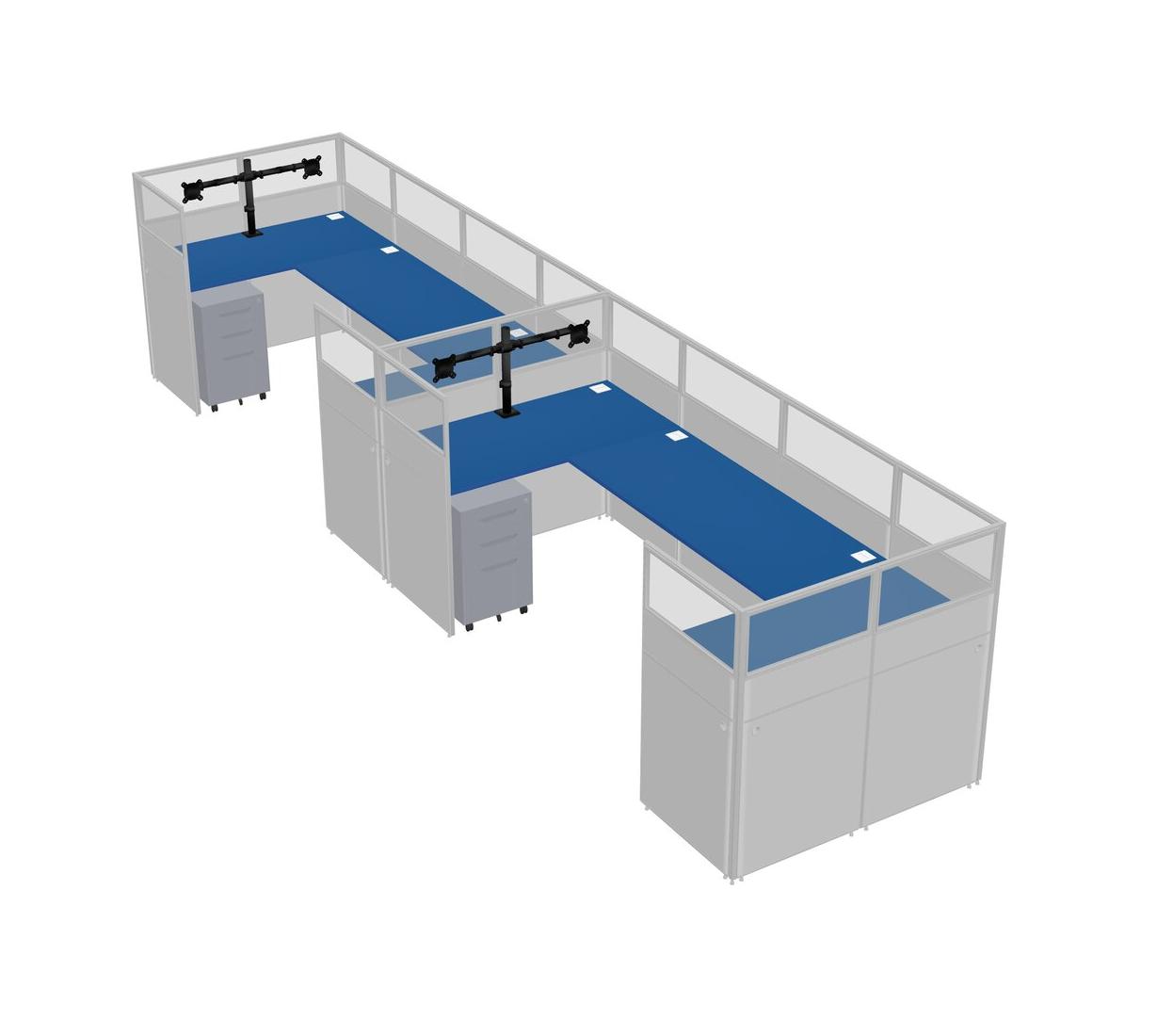 Système De Panneaux En U Prism Blue Pour 2 Personnes + Bras D'écran (bras Doubles) + Tiroirs Mobiles En Métal Pour 2 Utilisateurs